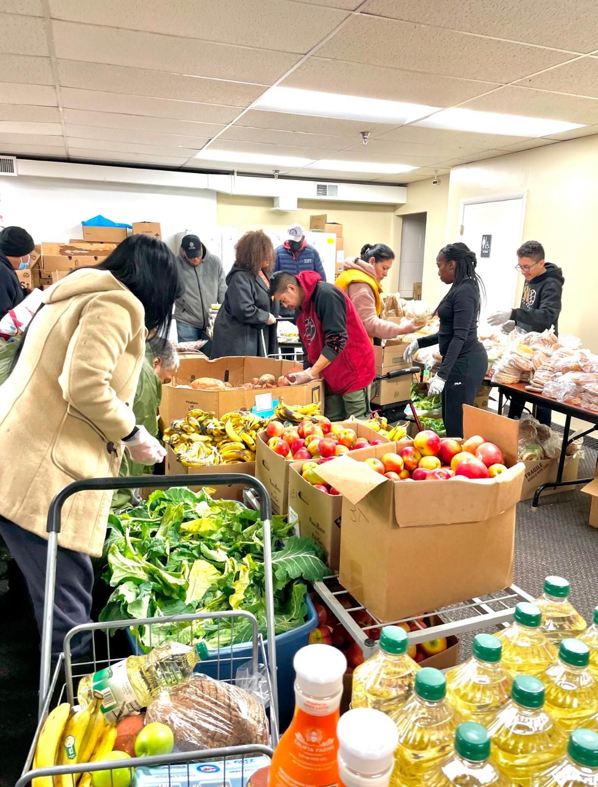 Our off-site Community Pantry is at St. Bernard’s Catholic Church in Riverdale 4 Tuesdays of every month, if there are 5 Tuesday’s we are off one of those days. On a typical Tuesday we serve 250 unique families at this large distribution. Most of the food at this event comes from Capital Area Food Bank and Passion & Compassion.